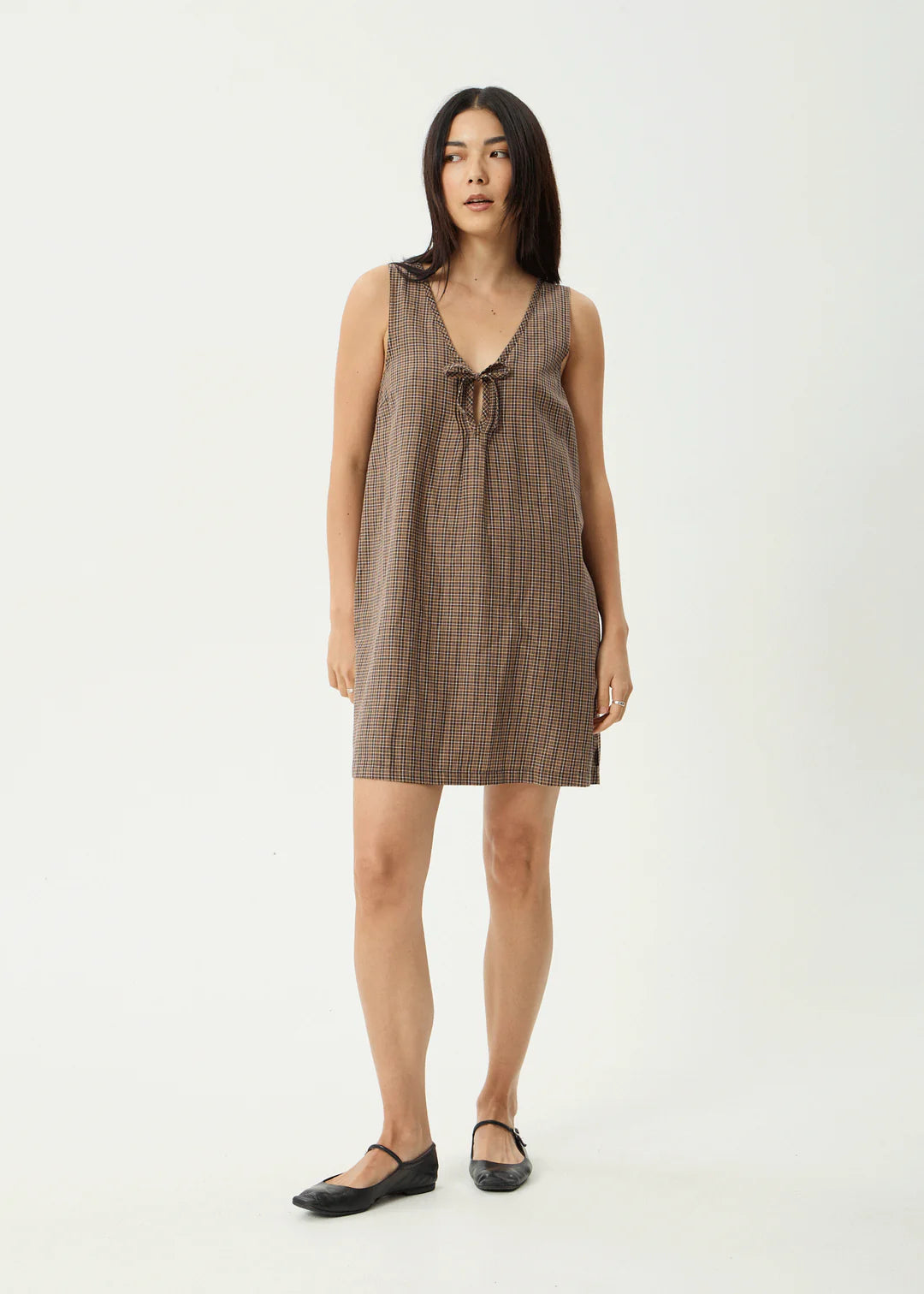 We're bringing back the 'Hometown' check in this easygoing women's mini dress. Designed in a classic boxy fit, it features a scooped neckline with a keyhole tie front and delicate pin tucks on either side. Bust darts offer subtle shaping, and the fit runs true to size for effortless everyday wear.