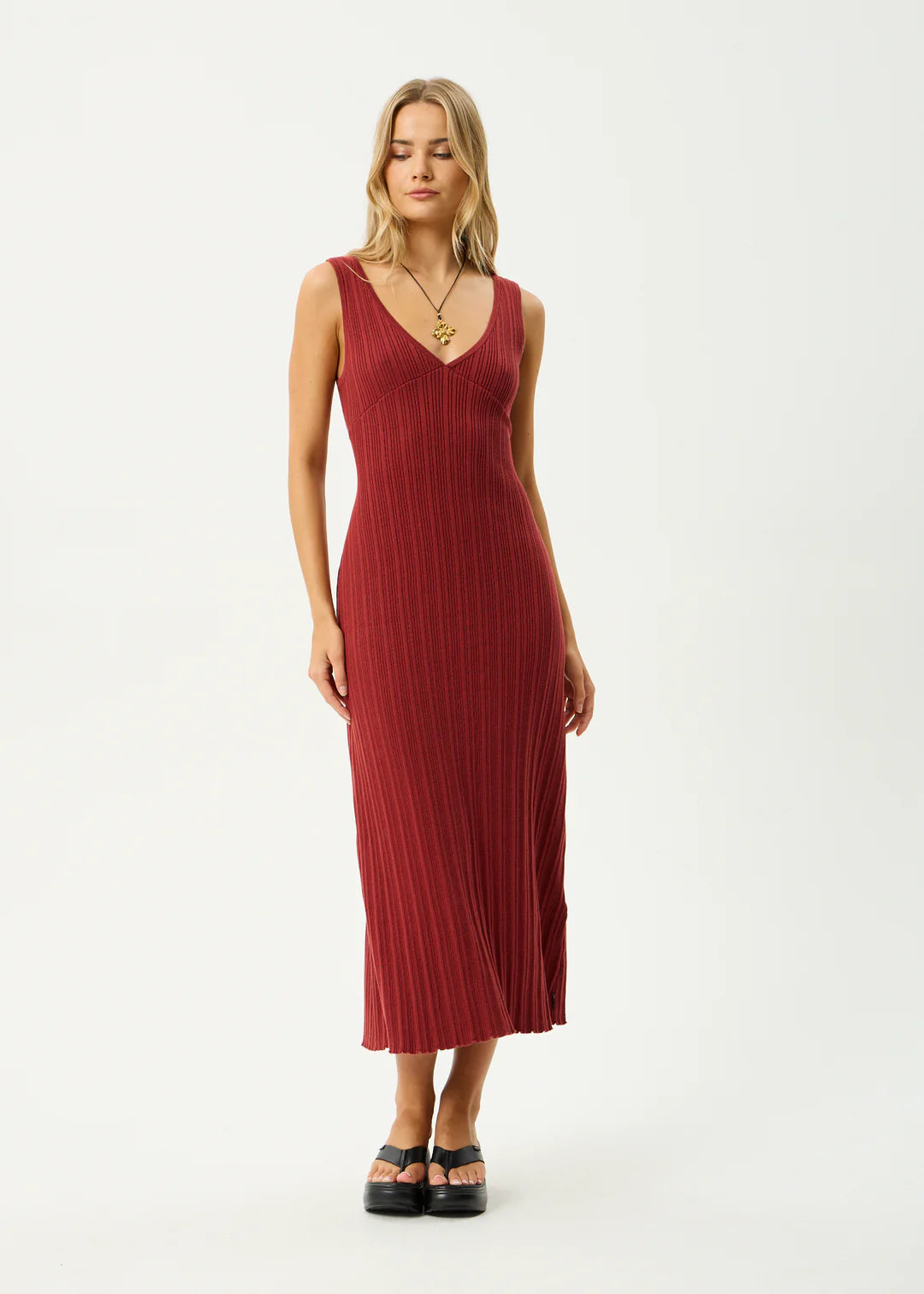 The 'Iris' midi dress is designed with a skimming fit and v-neckline, made from a soft variegated rib knit crafted using recycled cotton. The textured fabrication adds depth while keeping things light and breathable. Finished with a removable waist tie for styling versatility.
