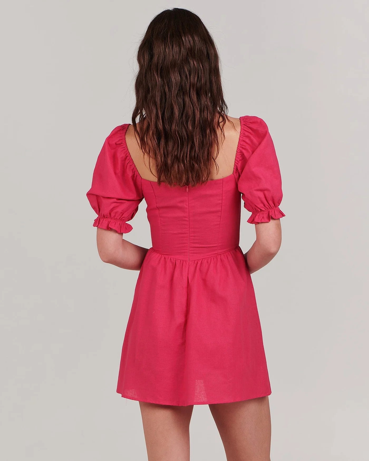 Gently puffed sleeves and shirred cups feature in this gorgeously feminine mini dress. Team it with a low heels for casual barbecue with friends.