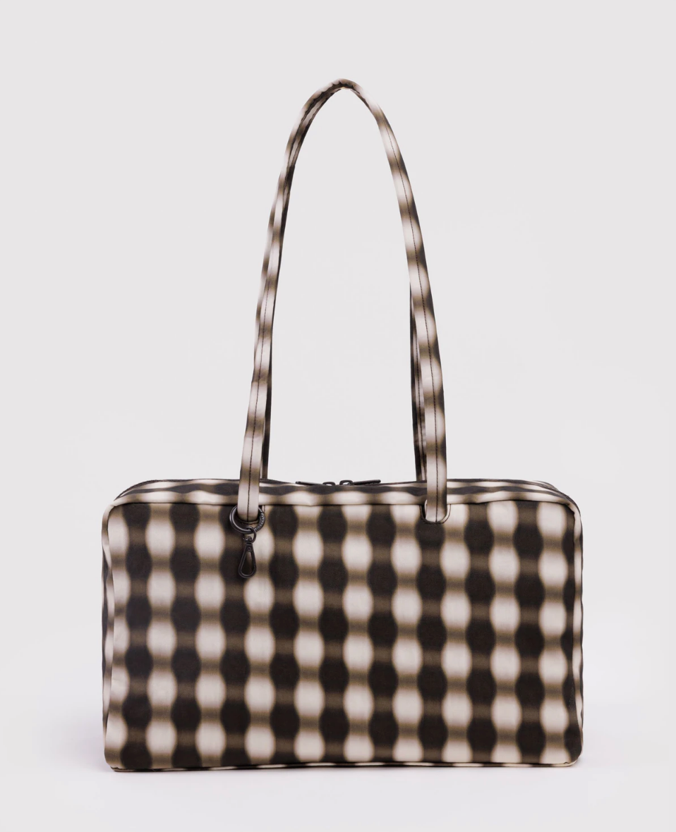 Medium Nylon Bowler Bag - Blurred Gingham Brown