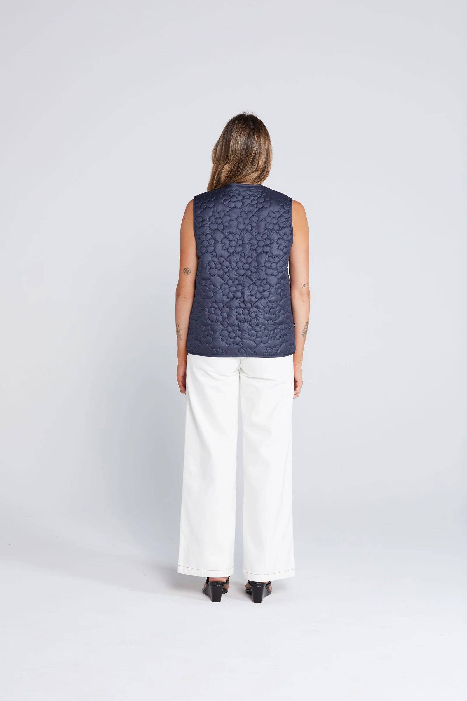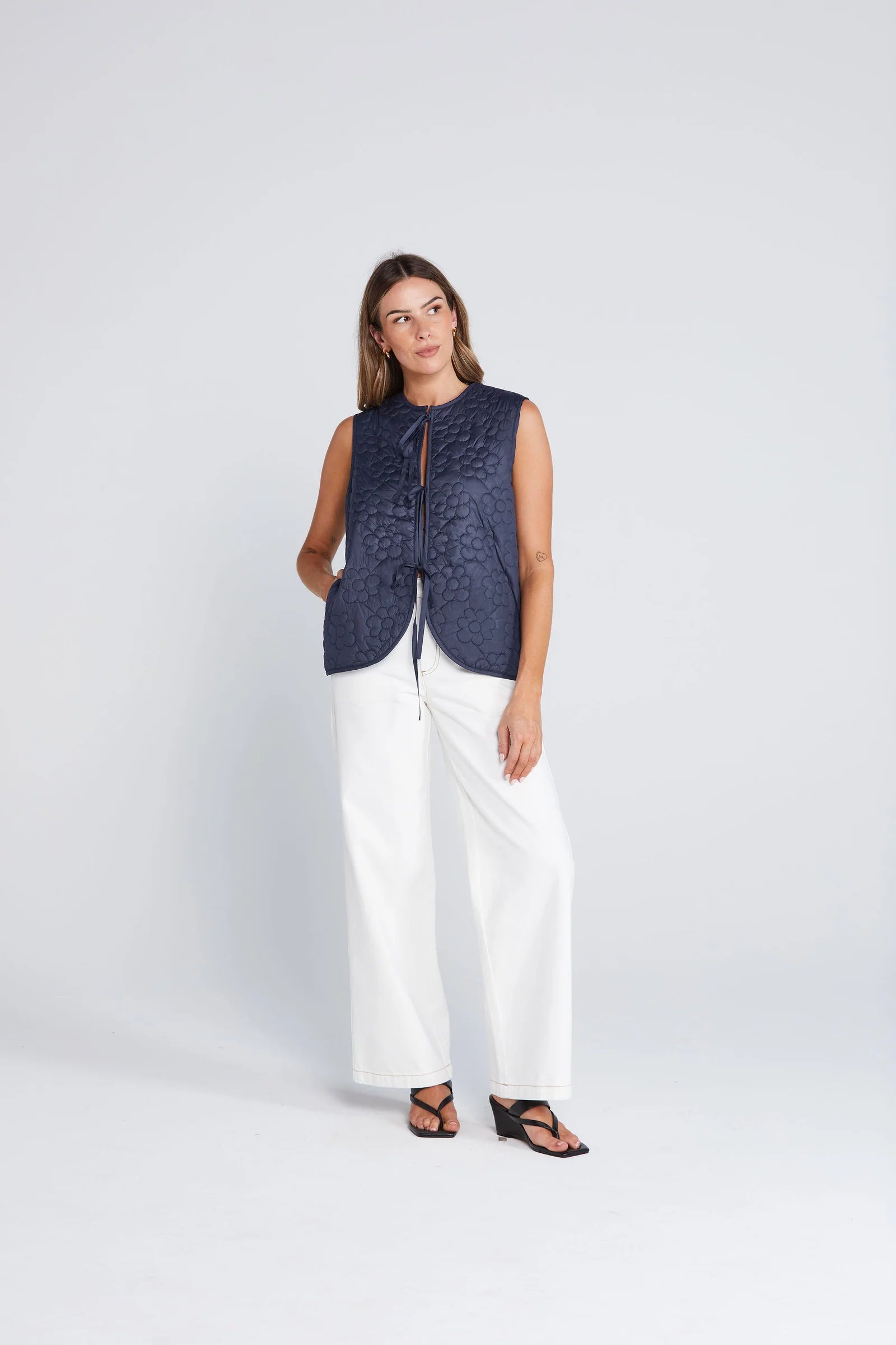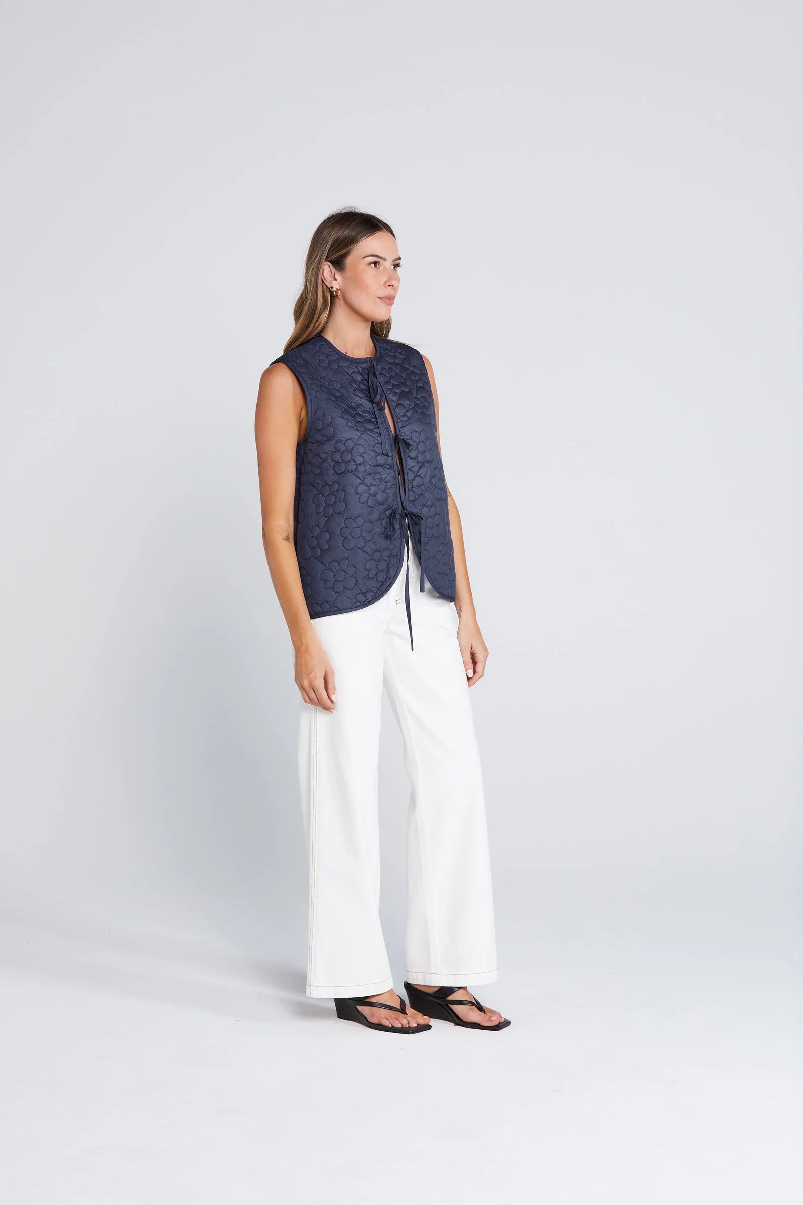Revive Vest is your go-to layering piece. Crafted from floral quilted fabric with binding around the edges, it features ties at the front and convenient pockets in the side seams. Wear it over anything, absolutely anything.