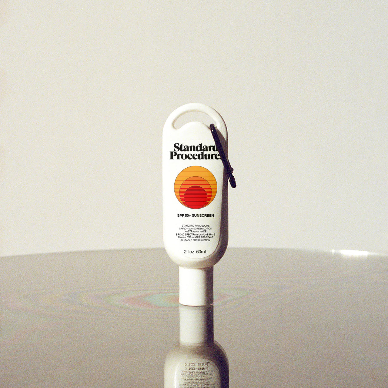 Our 60ml SPF 50+ comes equipped with black carabiner. The lid is removable so you can refill with the bigger sizes!