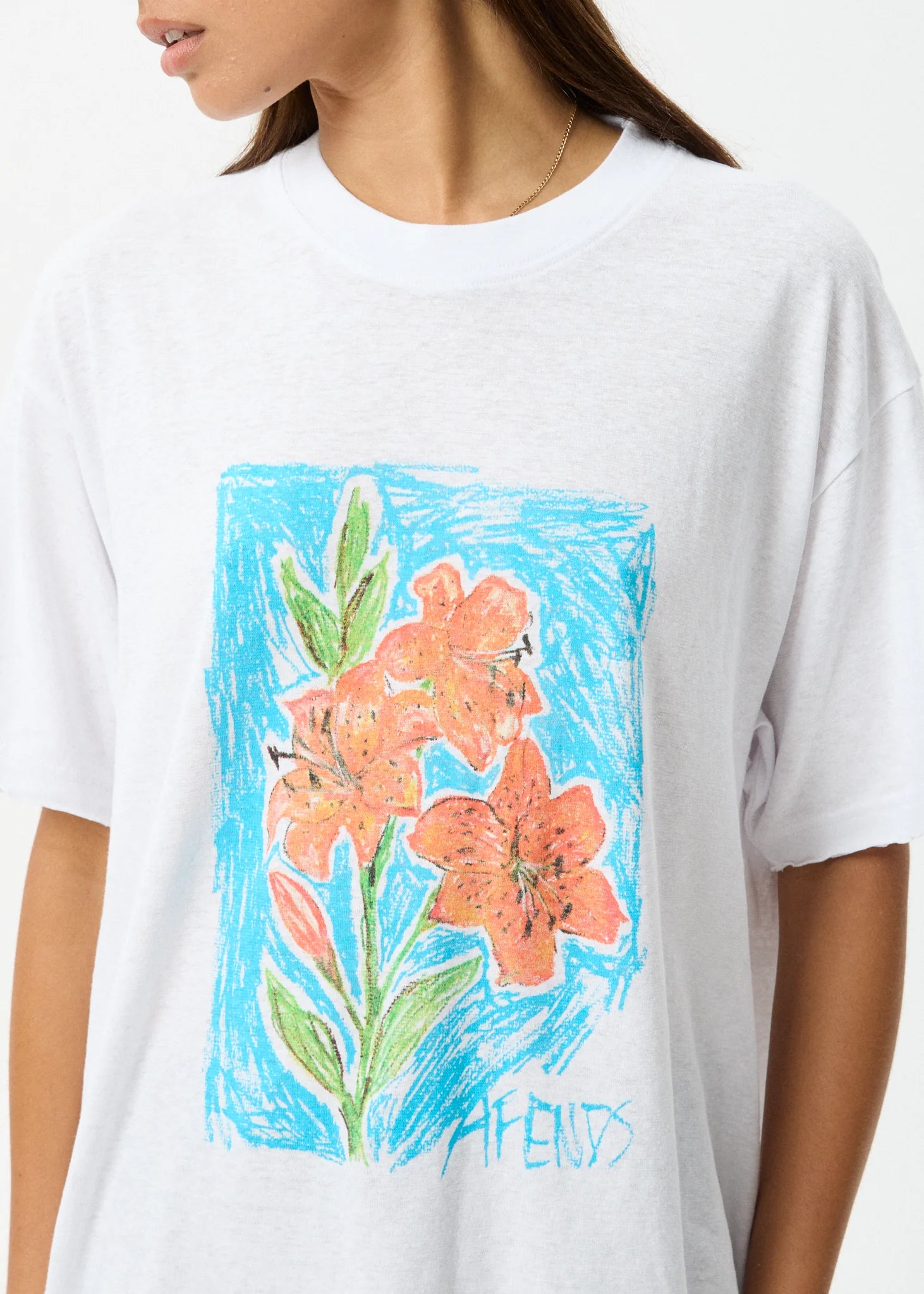 'Still Life' features a hand-drawn design created with oil pastels by our internal artist. If you enjoy this collection, you'll also appreciate the 'Sky High' collection for its similar artistic flair. Made from a lightweight 170gsm blend of hemp and cotton, it’s breathable and perfect for everyday wear.