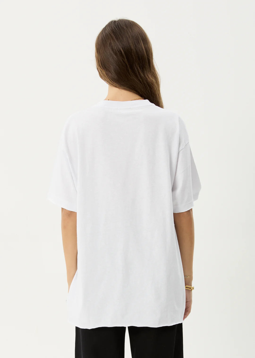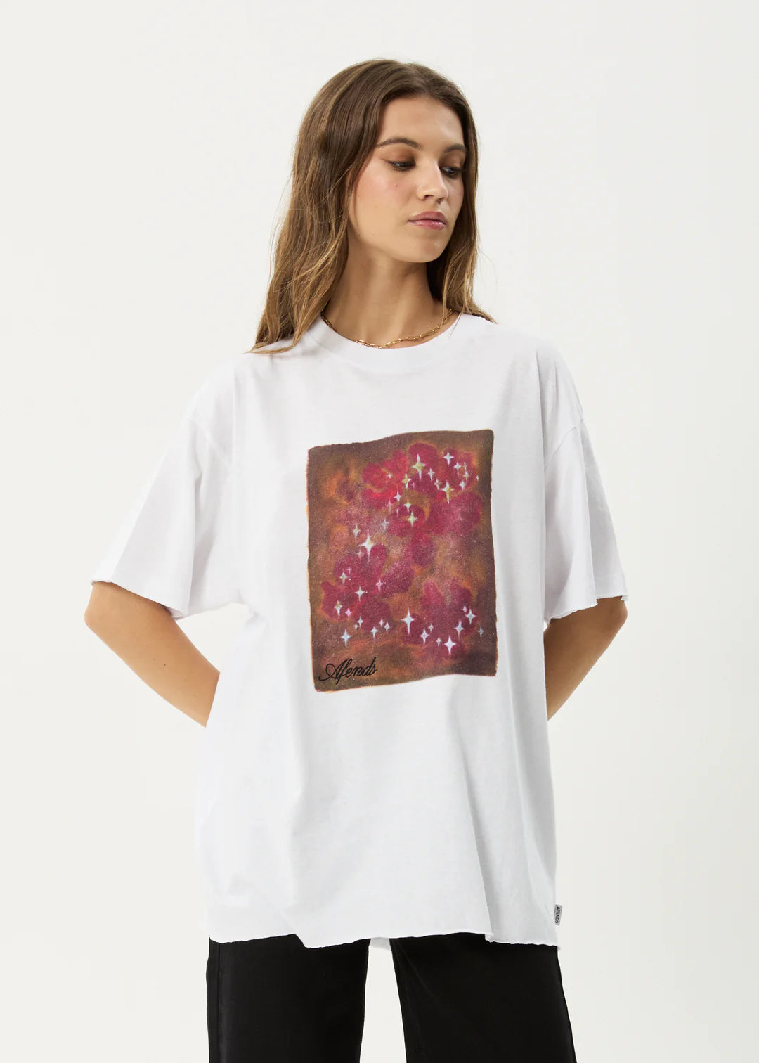 This season features exclusive printed artwork by Australian artist Ella Thrupp, a Byron based artist known for her 'floating' technique, building up layers of acrylic and glaze to create rich, celestial florals that felt like a natural fit for the season. This tee is crafted from a lightweight hemp cotton blend, designed with a comfortable ribbed crew neckline and double raw edge hem.